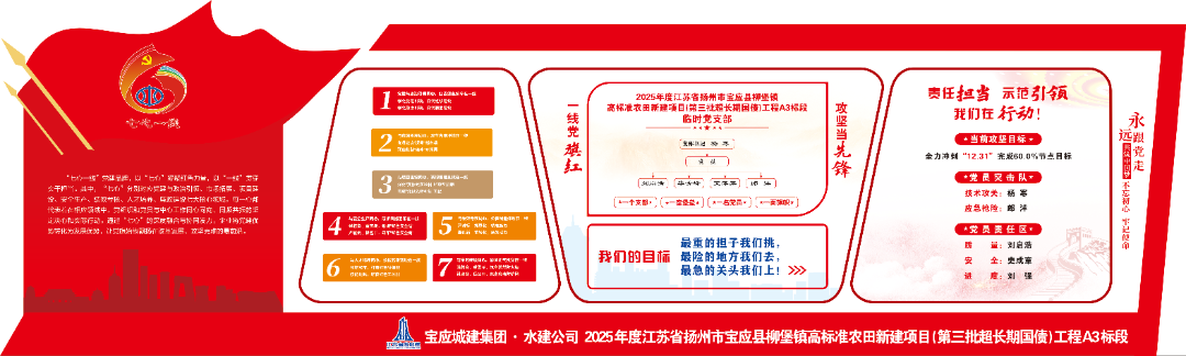 2025年度江苏省扬州市宝应县高标准农田新建项目借助超长期国债政策红利赋能乡村振兴,通过节水灌溉、生态防护等措施,减少农业面源污染,推动农业绿色可持续发展。宝应水建农业开发项目临时党支部自成立以来,面对多重履约挑战,党支部以“最重的担子我们挑,最险的地方我们去,最急的关头我们上!”为目标,锻造出一支由党员带头的“履约先锋团队”,成为攻坚一线的坚强战斗堡垒。