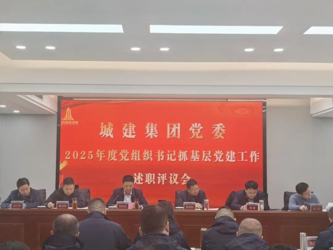 12月31日,宝应城建集团党委组织召开2025年度党组织书记抓基层党建工作述职评议会。集团党委书记、董事长蒋骏超主持会议,集团领导班子成员、各基层企业主要负责人、党组织书记以及集团机关各部室主要负责人参加会议。